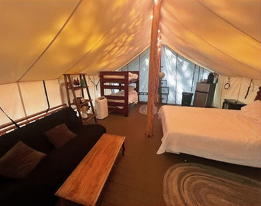 Moonshine Acres RV Park is where we booked our Glamping Tent, this is an rv park with great amenities. Right now, they have 6 glamping tents to choose from. We had tent #1. Slept 6 comfortably.