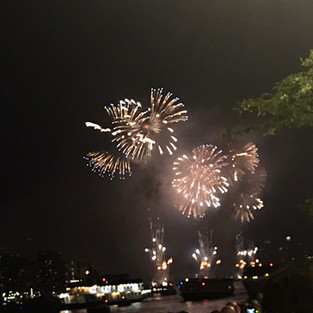 I had high expectations. I was waiting for the water boats to go by but we did not get those. Instead we got a series of yachts full of partiers taking their places along the Hudson. I was hoping this would be good - and I was not disappointed! The huge fireworks and synchronized barges exploding overhead lit up the sky full of colors and beautiful patterns being so close you can feel it in your body! We stood up on a bench for a better view, I am a little short to be in the masses and actually don't like feeling boxed in, but the bright fireworks are an amazing site to see! Such a great sight to take in and a larger than life moment!