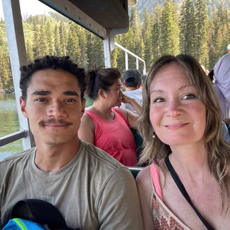 Hidden Falls Hike (3 hours) 4.9-mile round trip hike, or you can take a boat across the lake to the Hidden Falls, one or both ways. This hike is labeled as moderate. I don’t know why I had read or thought it was “easy”, it is not. We did see some families hiking along the way. We were all dragging through this one. Possibly because of the very hot dry weather (many said the day was unusually hot) or because it was the end of our trip with many hikes already. As we were continuing, passersby would say “you’re almost there, just half a mile” for at least a mile and a half lol, and not to mention many of them were sweating too. We passed a woman who we asked, “how much farther” and she replied, “to what” which made us all giggle. Yes, the waterfall is a main attraction, however “Inspiration Point” is just .5 passed the Falls. The last .5 of a mile to the falls was the hardest part. I kept thinking surely we were there. There are beautiful scenes all along this walk reminding you why you're on it.