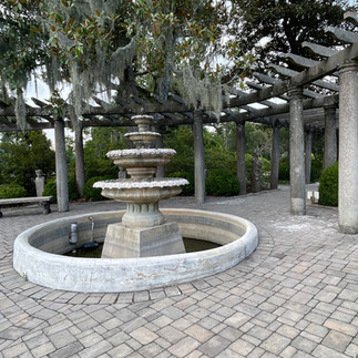 We walked down the bridal walk to the fountain and pergola which lands you along the lake. This is a breathtakingly beautiful spot. Turtles greeted us as well as herons and egrets. We admired the stone and workmanship of this lavishly designed garden that feels luxurious. There have been weddings in this spot. The pergola is quite the eye-catching structure and can be seen from many viewpoints around the lake. We meandered around taking it all in, sitting in the benches and talking about how it would have been to live here when we saw our friend driving the tram again, she stopped and asked if we’d like to ride back to any of the other stops. We took her up on it again as it was beginning to drizzle.